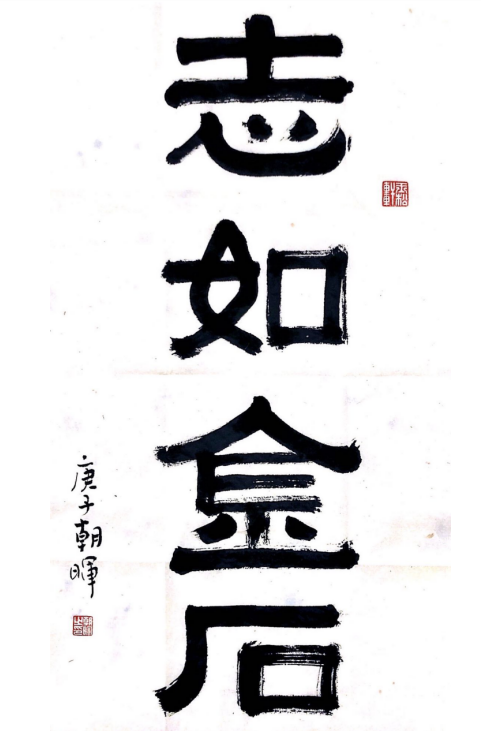 除了繪畫,侯朝暉還酷愛書法,看到這么多“最美逆行者”奮戰(zhàn)在抗疫一線,他寫下“志如金石”四個(gè)字,贊美這些最可愛的人。