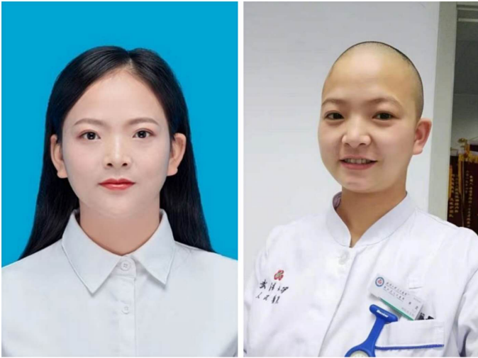 畫中的這位光頭女護(hù)士名叫單霞,是武漢大學(xué)人民醫(yī)院東院區(qū)的一名護(hù)士。為了避免交叉感染,節(jié)約穿防護(hù)服的時(shí)間,單霞毅然剃光了及腰長發(fā),投入到一線工作中去。“頭發(fā)沒有了可以再長,現(xiàn)在首要問題是保護(hù)好自己的同時(shí),盡力量去救更多人。”