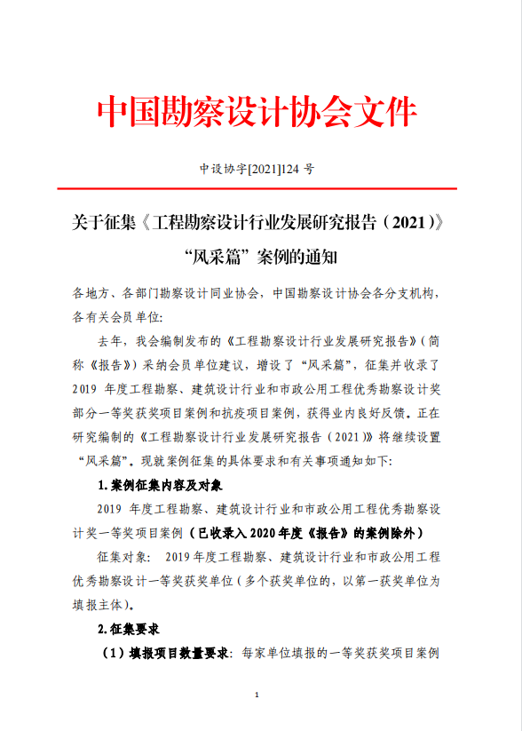 轉(zhuǎn)發(fā)中設(shè)協(xié)關(guān)于征集《工程勘察設(shè)計(jì)行業(yè)發(fā)展研究報(bào)告(2021)》“風(fēng)采篇”案例的通知