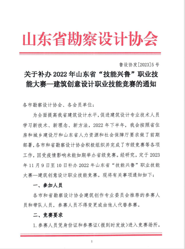 附件:關(guān)于補(bǔ)辦2022年山東省“技能興魯”職業(yè)技能大賽—建筑創(chuàng)意設(shè)計(jì)職業(yè)技能競(jìng)賽的通知
