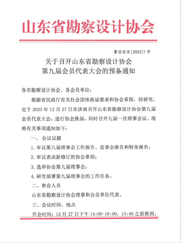 附件:《關(guān)于召開山東省勘察設(shè)計協(xié)會第九屆會員代表大會的預(yù)備通知》