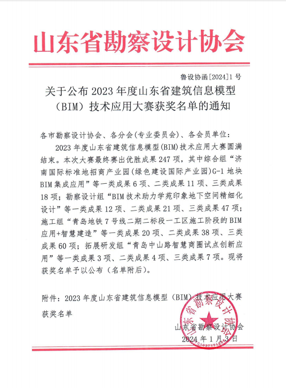 《2023年度山東省建筑信息模型(BIM)技術(shù)應(yīng)用大賽獲獎名單》