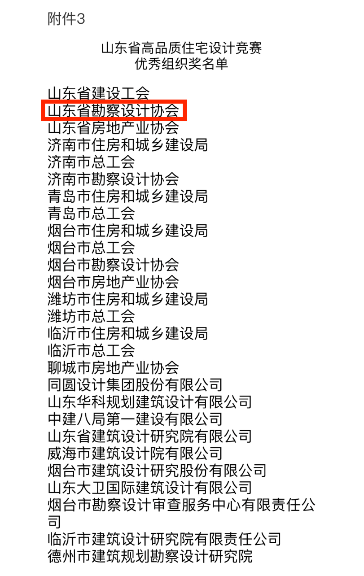 3.山東省高品質(zhì)住宅設(shè)計(jì)競(jìng)賽優(yōu)秀組織獎(jiǎng)名單