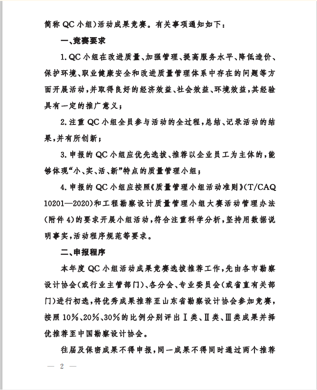 山東省勘察設(shè)計協(xié)會 山東省建設(shè)工會委員會 關(guān)于開展2024年工程勘察設(shè)計質(zhì)量 管理小組活動成果競賽的通知