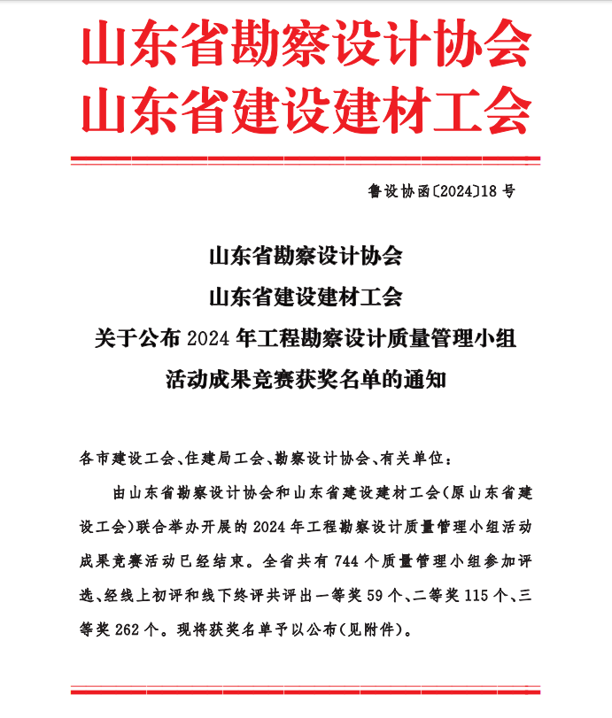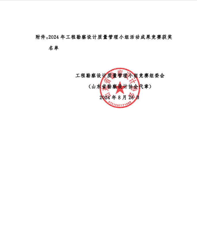 附件:關(guān)于公布2024年工程勘察設(shè)計(jì)質(zhì)量 管理小組活動(dòng)成果競賽獲獎(jiǎng)名單的通知