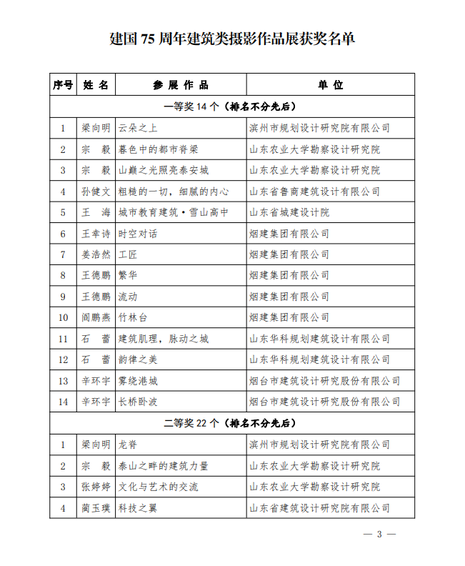 附件:山東省勘察設計協(xié)會 山東省建設建材工會 關于公布建國75周年建筑類攝影作品展 獲獎名單的通知