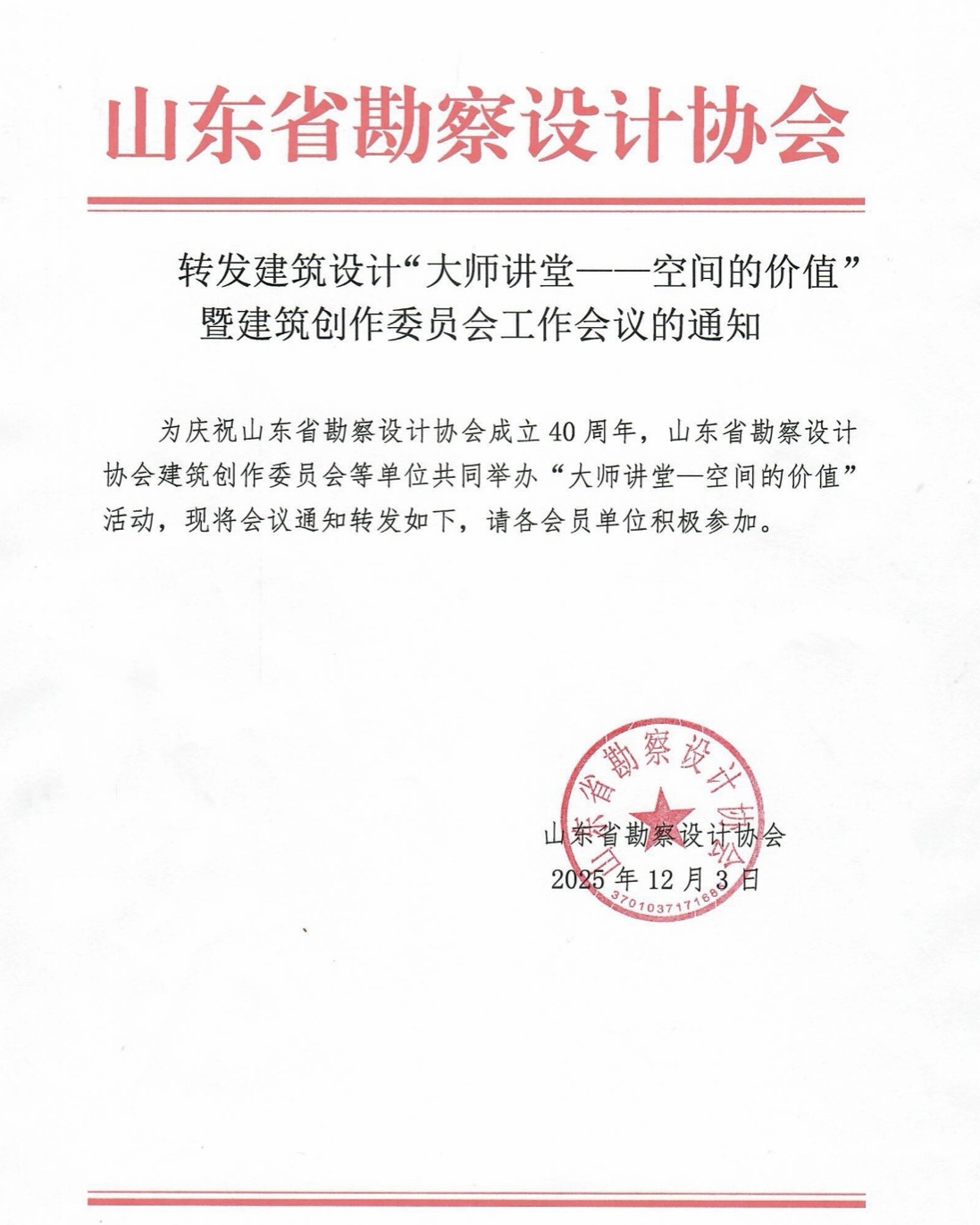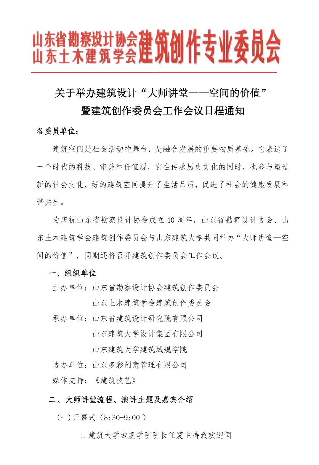附件:轉(zhuǎn)發(fā)建筑設計“大師講堂——空間的價值”暨建筑創(chuàng)作委員會工作會議的通知